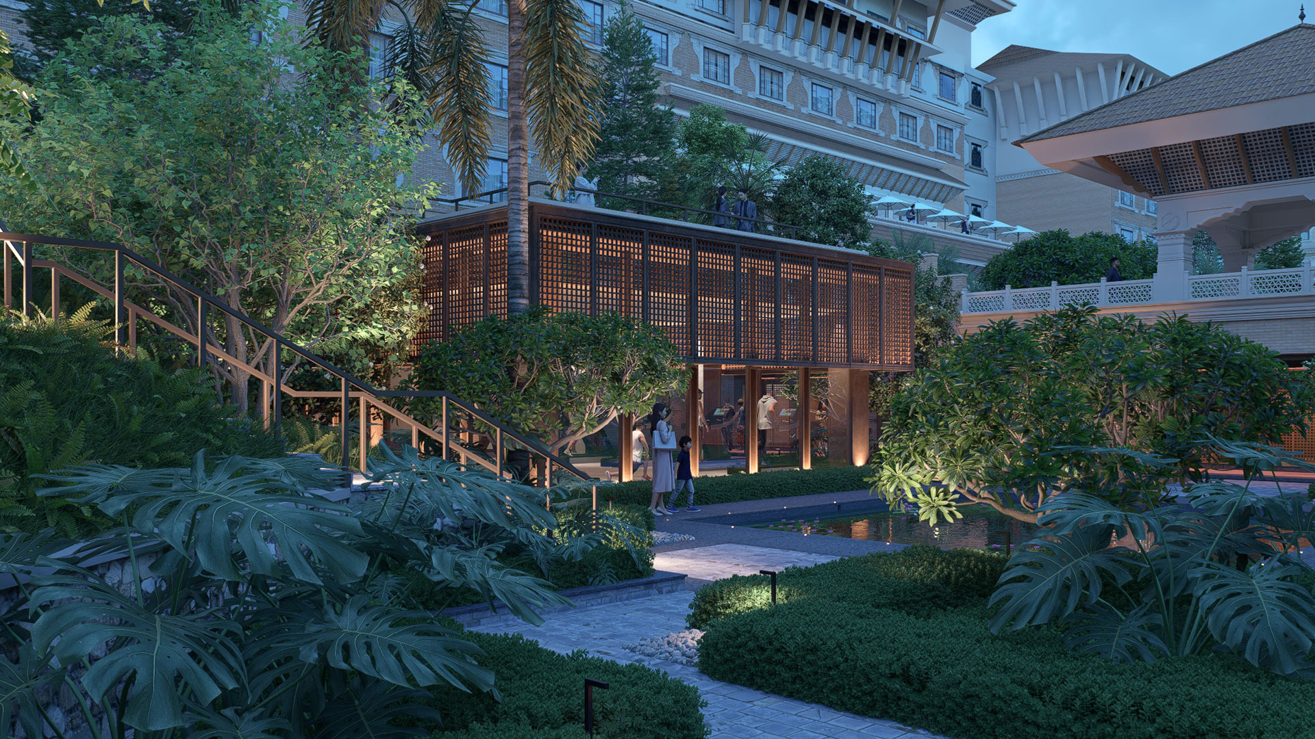 Architecturally, the new additions will ensure a seamless visual and physical connection with the existing resort. This is achieved by integrating the original structural grid and by echoing familiar design elements, such as wooden screens. The goal is to provide a sense of continuity while offering a fresh, expansive new space that feels both modern and authentically connected to its surroundings. The strategic placement of facilities within nature fosters a sense of discovery, guiding guests through a serene and integrated landscape – a journey of ‘Arogya’.