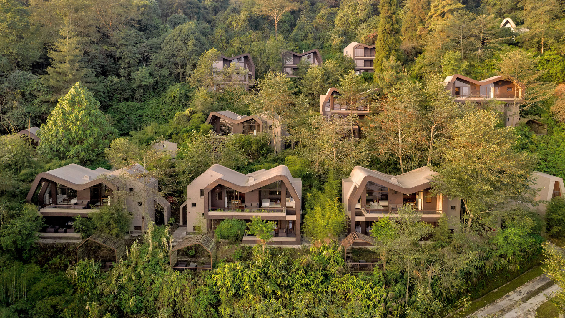 Responding to the environmental sensitivity of the site, the footprint of villas is minimized by stacking floor areas vertically. The narrow building footprint also maximizes daylighting and cross-ventilation during summer, and optimizes solar exposure during winter – all aiding in the reduction of energy consumption. The finishes and fittings are derived from local materials and craftsmanship, making the development intrinsic to the local climate, economy and ecology.