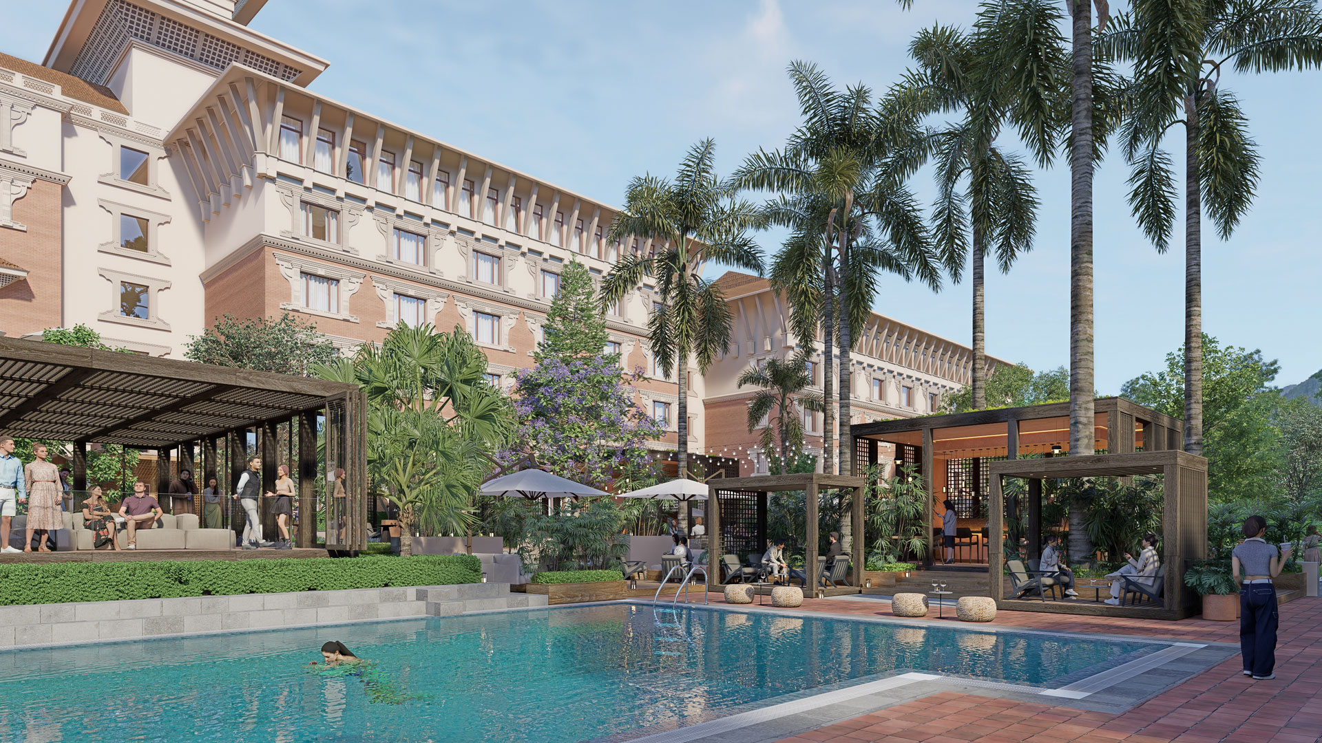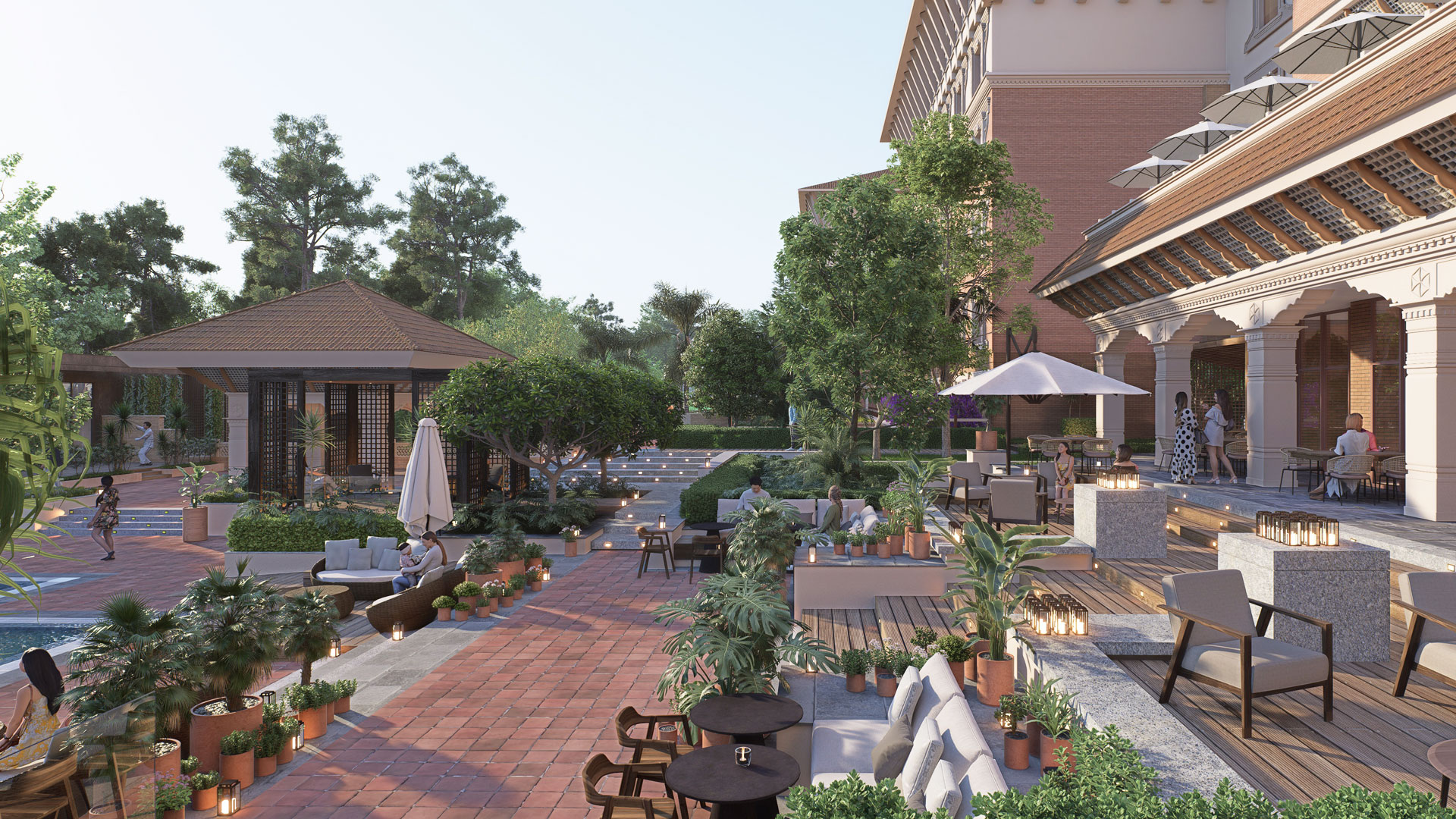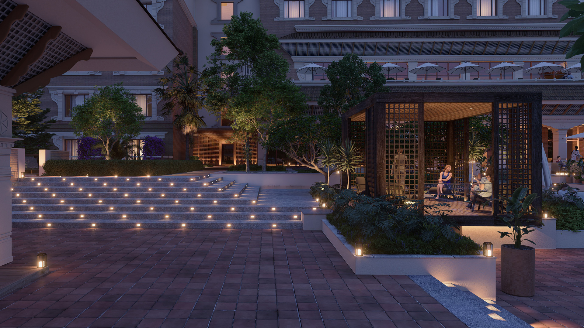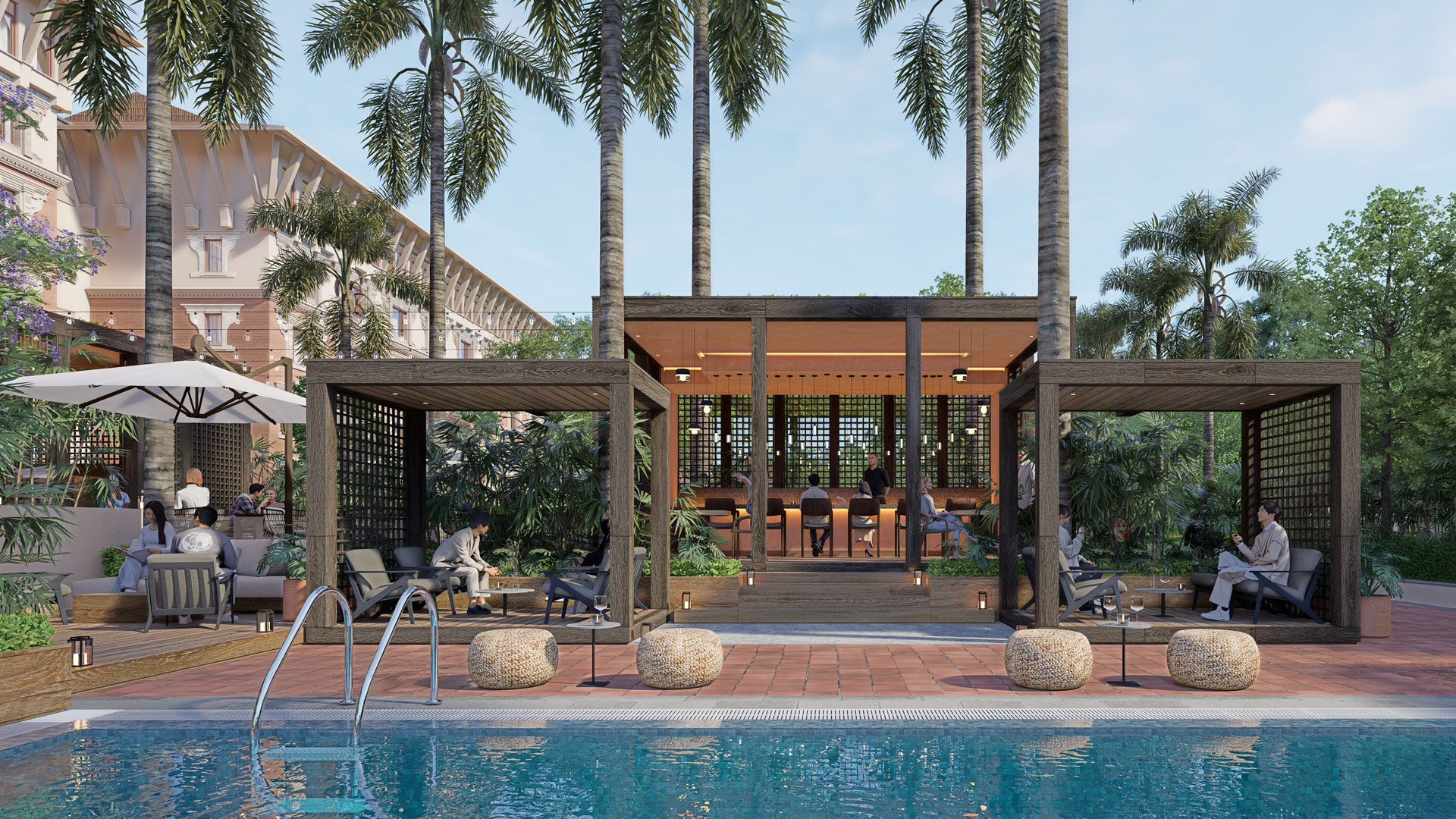The currently underutilized pool area at the Hyatt Regency in Kathmandu is being revitalized with a range of new activities designed to transform it into a vibrant focal point of an urban resort. To encourage greater guest use, the space features several new additions, including spill-out from the existing All-Day Dining area, a new alfresco restaurant, and a dedicated pool bar. For more intimate experiences, a cluster of gazebos are added, offering smaller, more private gathering spots within the larger open space. This strategic expansion is designed to make the pool area a dynamic and inviting destination.