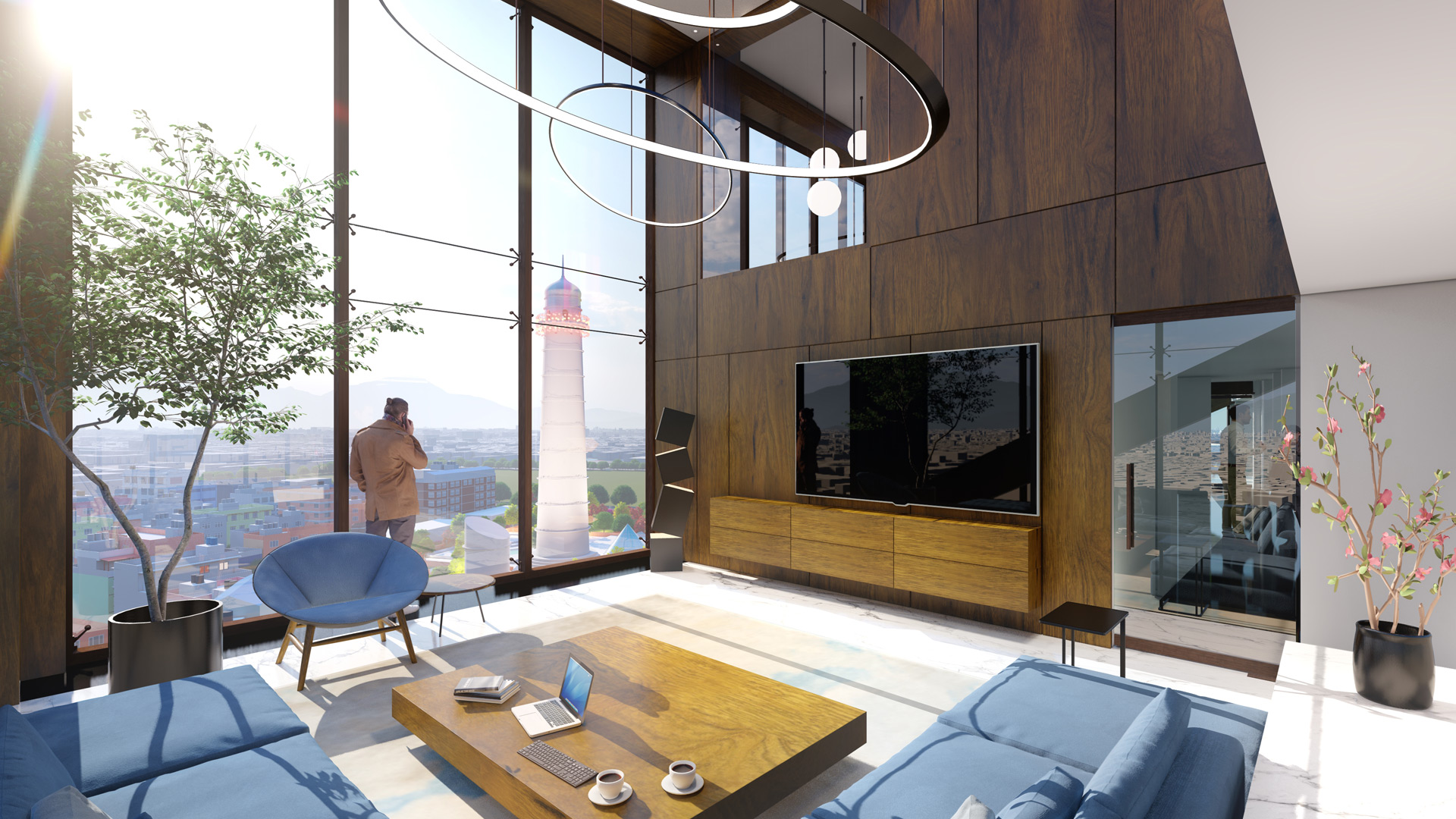 Above the retail podium, the building footprint decreases to create landscape terraces – the spill outs for Meeting venue and co-working spaces. This narrowing of the tower footprint also decreases the shadow impacts on the main street. The double height spaces at the bottom of the tower are introduced to push the office floors upwards, rising above the surrounding buildings, opening the glazed interiors to panoramic views of the city and the hills beyond.