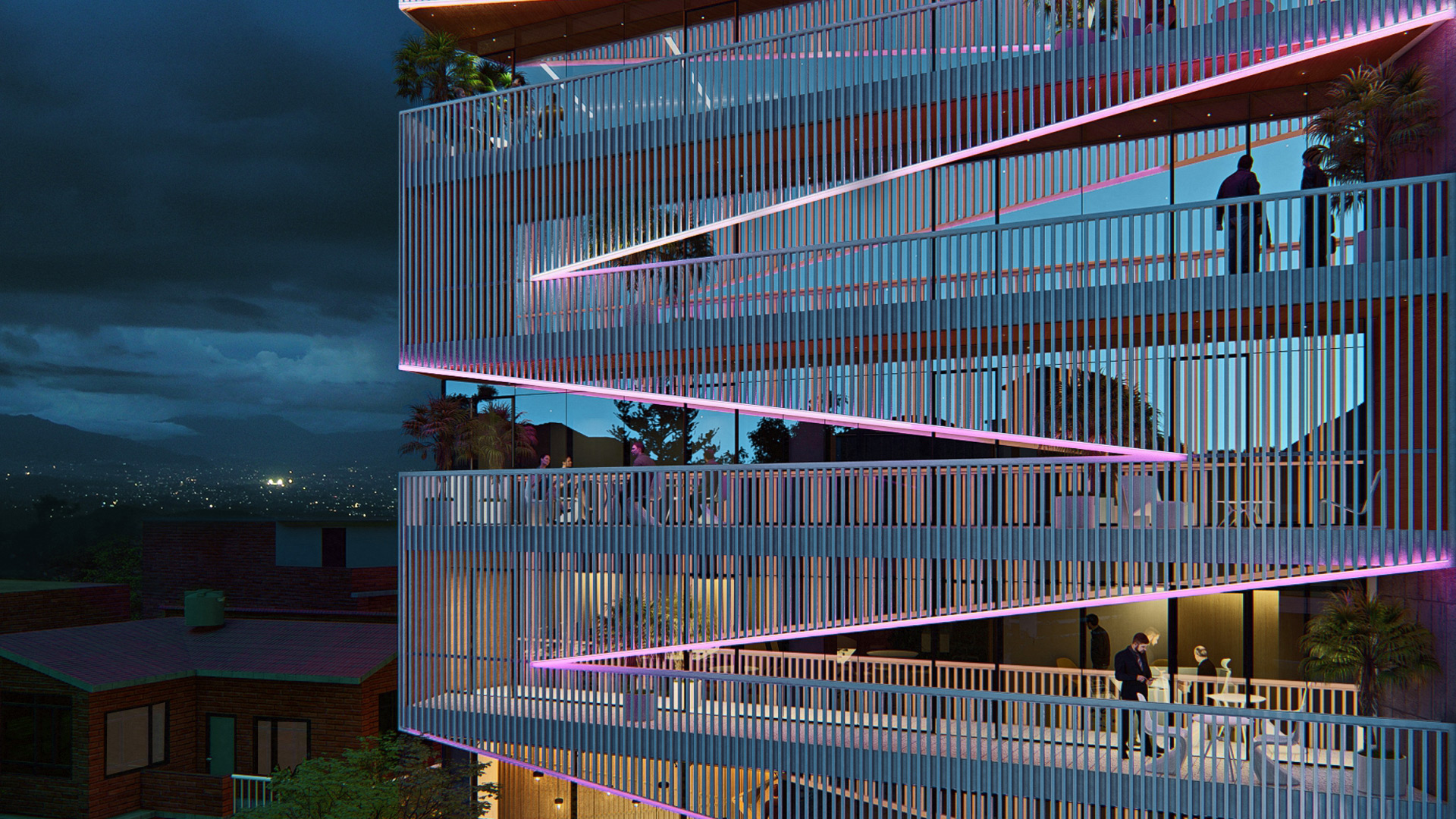 Located in a bustling street of central Kathmandu, the office building demands distinct yet broad responses: a highly noticeable, west facing facade that also addresses the solar exposure during summer.